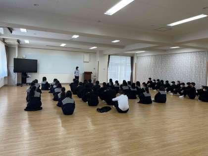 毎週水曜日は、朝から9年生が交流ホールで学年集会を行っています。