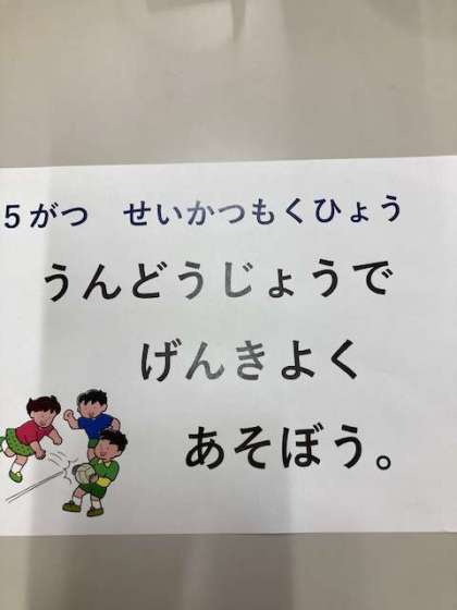 5月のせいかつもくひょうは「うんどうじょうでげんきよくあそぼう。」です。