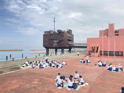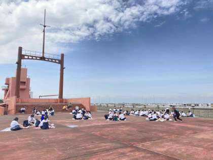 砂浜から移動して、集いの広場でお弁当を食べました。