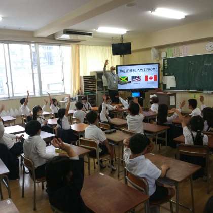 5月12日(木)、C-NETのガードナー先生の英語の授業を真剣に聞き、質問に手を上げて答えていました。とても楽しく授業を受けていました。
