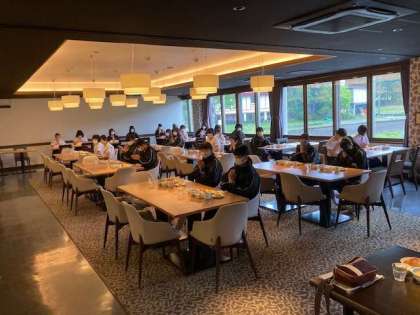 今にも雨が降るそうな天候のもと、昨日より30分早い活動の始まりです。生徒は全員元気です。