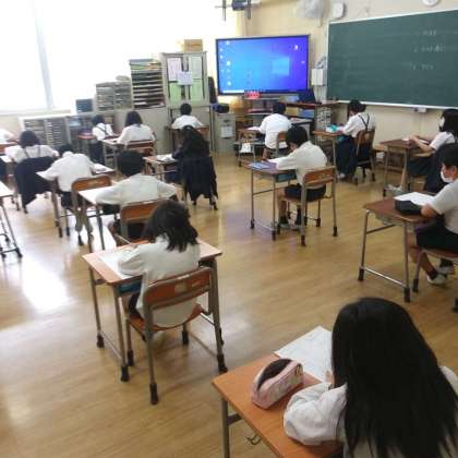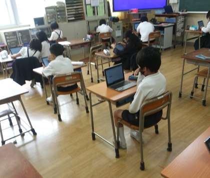 5月20日(金)、3年生の授業で算数のテストがありました。その後、各自でタブレットを使って書き込んだり、計算したりする学習をしていました。