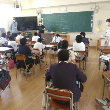 ガーデナー先生が、世界中の季節ごとの行事の映像を見せて授業を行っていました。次回の授業では、各自で、タブレットを使い日本の行事をみんなに紹介する文章を英文で作って、発表する学習をします。いろいろな資料を利用して作成してください。