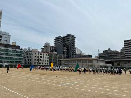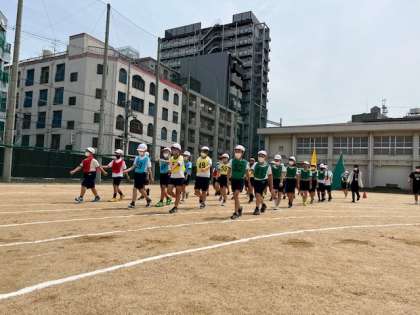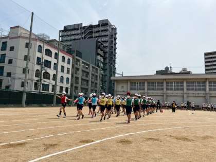 4・3・2・1年生はタイミングを合わせて、児童席からの入場の練習をしました。