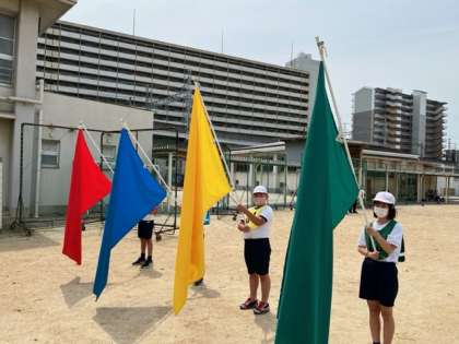 最後尾には、それぞれの色の組を代表して、応援団の団旗担当が。