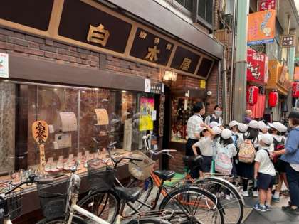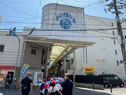 まずは、萩之茶屋本通商店街の見学を2つのグループに分かれて行いました。