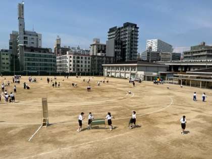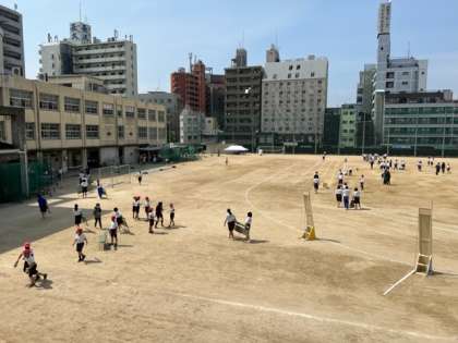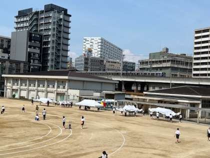 会場設営、放送練習、テントの仕込みなど、児童・生徒が生き生きと活動しています。物を運んでいるときのかけ声や、作業しながらの談笑など、微笑ましいです。