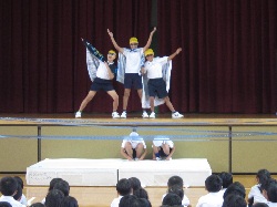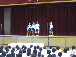 6月18日(金)の児童集会がありました。運動委員会の子どもたちがプールの正しい使い方をみんなに教えてくれました。「プールサイドは走らない」「プールに飛び込まない」など、プールレンジャーがその危険性を教えてくれました。きまりを守って、楽しく安全にプールの学習をしていきましょう。