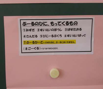 明日は、避難訓練があり、3時に下校しますという連絡がありました。さらに、プールの授業が始まりますので用意するものと注意事項が書かれているものをもらいました。
