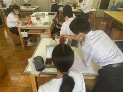 カメラやスマートフォンで写真を撮る機会が身近になっています。今日の授業は写真の撮り方やカメラの構造を学習します。被写体の構図を考えて、みんな自由に写真を撮影していました。
