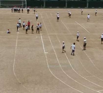 6月17日(金)4時間目、運動場でキックベースボールをチームに分かれてやっていました。転がってきたボールを蹴るのはなかなか難しいようです。