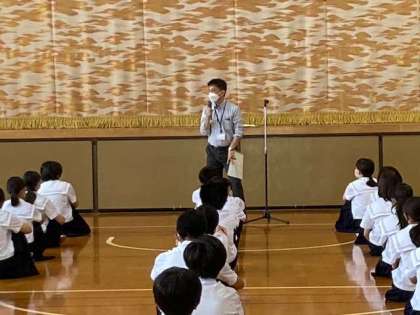 小学校全校朝会では中学校の教頭先生から「疑問を持つことの大切さ」についてのお話がありました。普段疑問に思っていることについて、夏休みなど時間があるときにじっくり考えてみてはいかがでしょう?