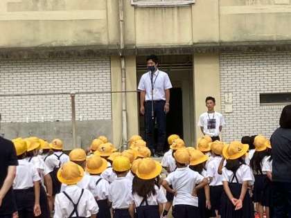 6月20日の朝、中学校全校集会が体育館で、小学校全校朝会がグランドでそれぞれ行われました。