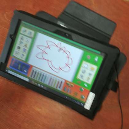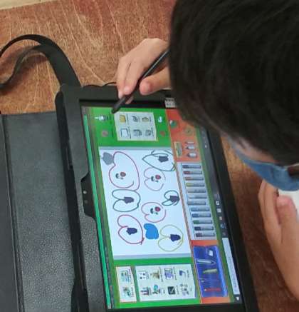 6月21日(火)、1年生の学習で、タブレットを使って思い思いに絵を描いていました。例えば、担任の先生が描いた『ヒマワリ』の絵を見て上手に輪郭を描いた児童がいました。また、写真を見て色とりどりの絵を描いた児童がタブレットを囲んで操作していました。