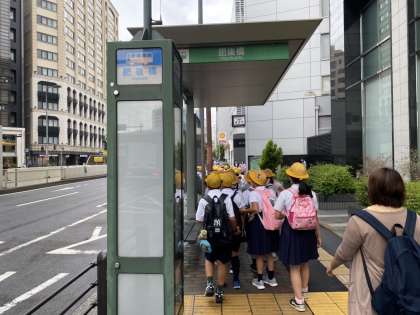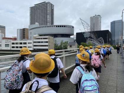 今日、4年生は社会見学に出かけています。