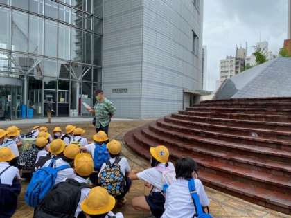 肥後橋駅から歩いて10分。目的地の大阪市立科学館に着きました。この後、館内見学とプラネタリウム見学を行います。