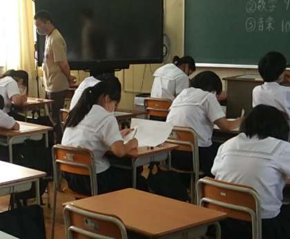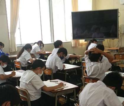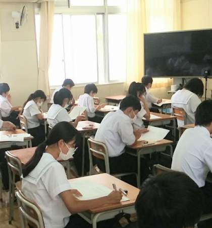 6月22日(水)、中学生1学期末テストの1日目(国語・数学・音楽)が行われました。みなさん、みんな真剣に考え、解答用紙に書き込んでいました。