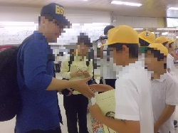 6月19日(金)、6年2組の子どもたちがJR新今宮駅に行き、観光で大阪に訪れてた海外の方に、「大阪のまちでできること」を紹介しました。初めはどの子も心配そうに、不安げに話しかけていましたが、海外の方の優しい笑顔に、子どもたちも学習してきたことを堂々と英語で伝えることができました。子どもたちも達成感を感じたのでしょうか。とてもうれしそうな表情で学校に帰ってきました。