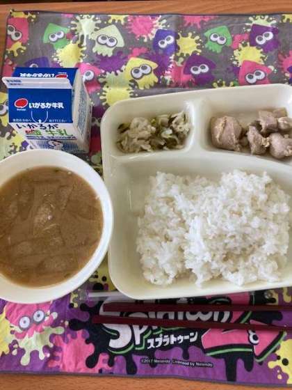 今日の献立は、ごはん、鶏肉のしょうゆマヨネーズ焼き、とうがんのみそ汁、切干だいこんのゆず香あえ、牛乳です。