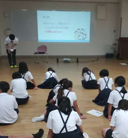 7月2日(土)、交流ホールで、避難所の役割についてのお話しがありました。避難所には、多くの人だけでなく、迷子の動物たちも連れて来られるので、お世話してくれるボランティアがいてほしいというお話がありました。