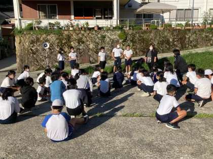 強い夏の日差しの中、2日目がスタートしました。児童全員元気です。