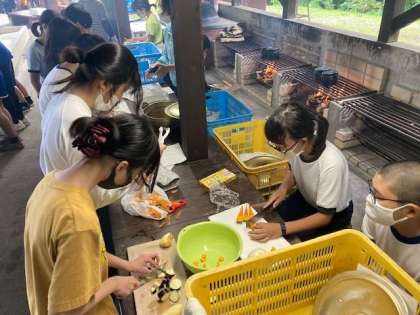 まずは野菜を切るチームと火を起こすチームとご飯を洗うチームに分かれて分業です。