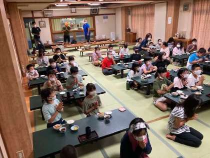 2日目夕食は鴨鍋です。飯盒炊さんから余り時間がたってませんが、それでも食欲は旺盛です。
