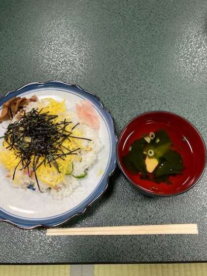 林間学習最後となる3日目昼食はばら寿司でした。