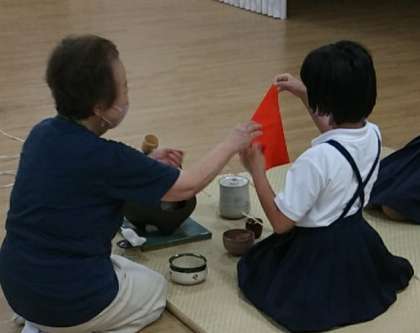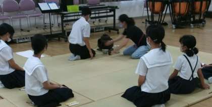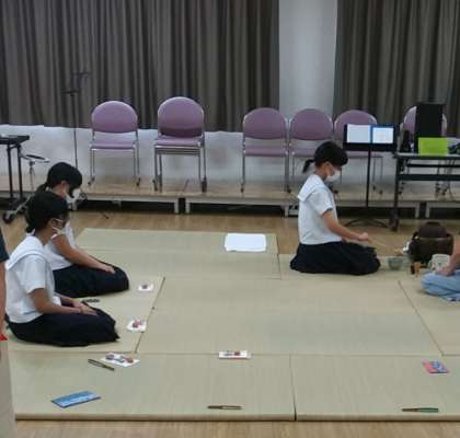 7月27日(水)、午後から交流ホールにて、茶道部が活動していました。茶道具の動かし方や作法を学習していました。