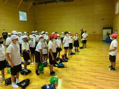 開舍式の様子です。今日から3日間お世話になる、なかや旅館さんの体育館で開舍式を行いました。
