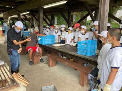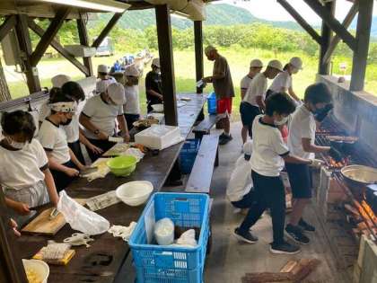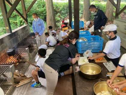 下山後、キャンプ場に移動して飯盒炊さんです。火を起こし、野菜を切ってカレーライス作りのスタートです。
