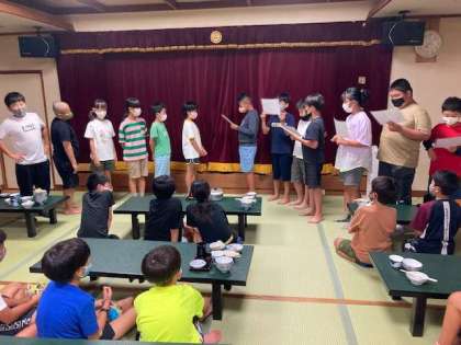 夕食後、昼間の飯盒炊はんで行われたカレーライスコンテストの表彰式がありました。