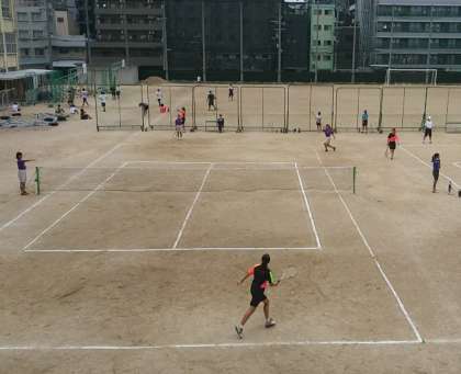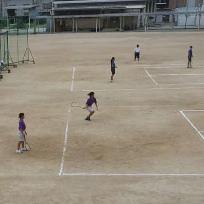 8月17日(水)、小雨の降る中、午前中の運動場にて、瓜破西中と練習会が行われていました。