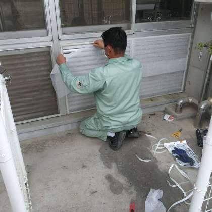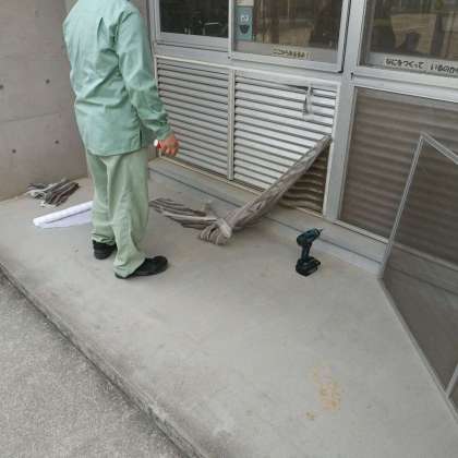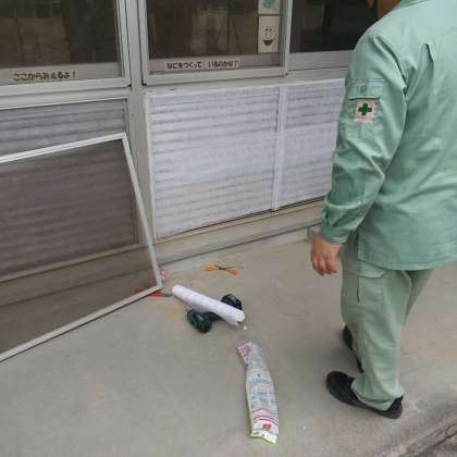 8月22日(月)、午前中に、配膳室の運動場側の腰下の部分の排気フィルターの張り替えをしてくださいました。とても真っ黒な状態が見違えるほど綺麗になりました。