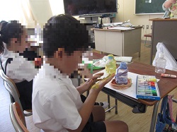 4年1組の図工の学習の様子です。ペットボトルに色を着けた紙粘土を思い思いに貼り付けていました。テーマは「夢の家」です。たくさんの色を使っている子、ビー玉などの飾りを付けている子など、どれも個性が表れていました。いったいどんな作品に仕上がるのか。楽しみにしておいてください。