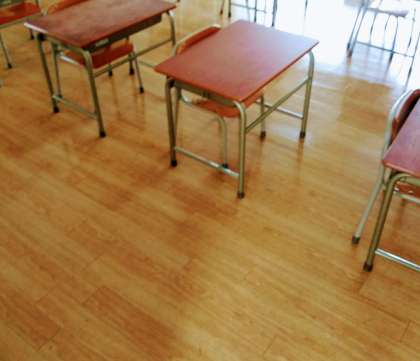 8月23日(火)、25日(木)から2学期が始まります。学期の終わりに児童たちが机や椅子を廊下に出してもらい、今回は夏休み中に1〜6年生の先生方で教室のフローリングオイルで清掃をしてくださいました。床がとても綺麗になりました。