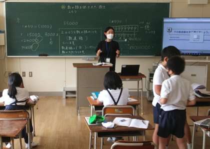 9月1日(木)、3年生の算数の授業では、習熟度別で、数直線の目盛りを正しく読む学習をしていました。