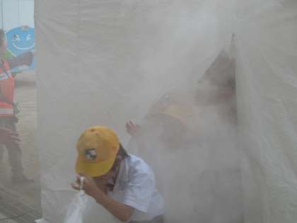 起震車、スモークテントの様子