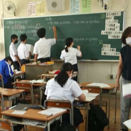 9月7日(水)、8年生の数学の授業です。色々なヒントから1次関数の式が求められます。