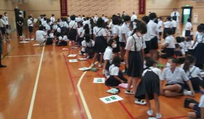 9月8日(木)、体育館で児童集会がありました。教育実習生についてのクイズで盛り上がっていました。