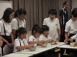 7月6日(月)、6年生がお茶(茶道)とお花(華道)の体験をしました。実際にお茶をたてたり、客人として友だちをもてなしたり、思いのまま花を生けたりしました。