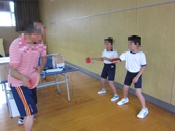 いよいよ、小学生が中学校のクラブに入部し始めました。希望者のみの参加ですが、子どもたちも楽しみにしている様子でした。写真は卓球部とバドミントン部の様子です。顧問の先生がやさしく動きを教えてくれました。入部した児童は、できるだけ休まずに参加できるようにしましょう。