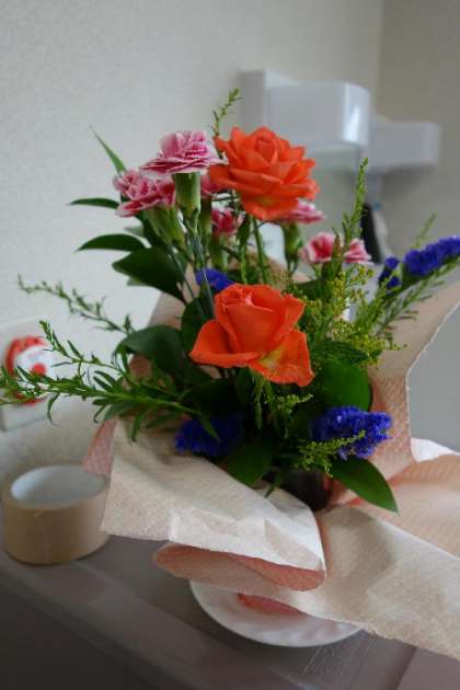 校長室に昨日のお茶お花体験の名残のお花が活けられていました。