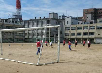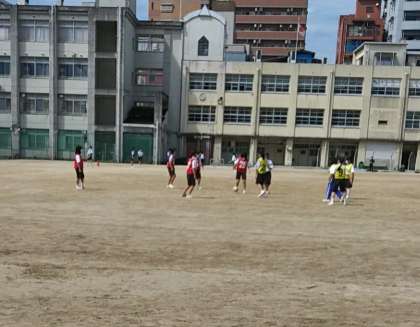 9月10日(土)、9年生の体育の授業で、サッカーを学習していました。男子は、本格的なゲームをやり、女子は、ボールの動きを確かめながらやっていました。