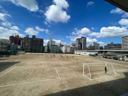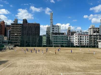 今日はいくつかの中学校のチームが集まって、練習試合をしています。本校の7年生・8年生、他校の生徒も、いきいきとプレーしています。