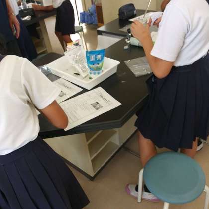9月13日(火)。創作グラフでは、ちぎり絵風に文字の上にちぎったカラフルな色の紙を貼っていました。サイエンスグラフでは、バスボムを作ろう!ということでビーカーに重曹とクエン酸と片栗粉を入れ混ぜて石鹸を作っていました。