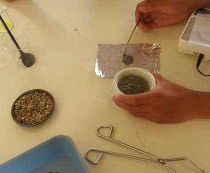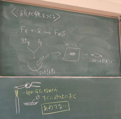 9月15日(木)、理科室にて、8年生の硫化鉄を作る実験が行われていました。