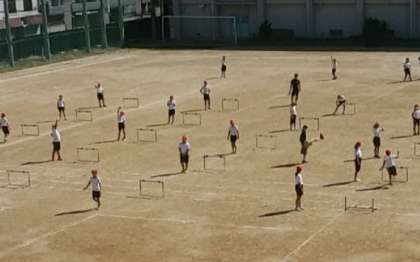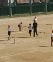 9月16日(金)、5年生の体育の授業でハードルを飛ぶ練習をしていました。