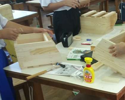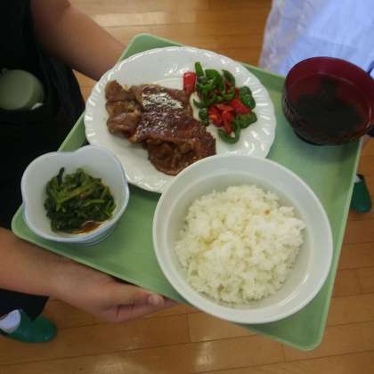 9月16日(金)、調理室にて、豚のしょうが焼きと味噌汁とほうれん草のおひたしを作り食していました。また、技術室では、本箱が仕上げ段階に入っていました。