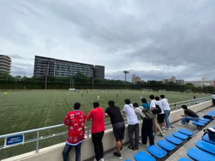 鶴見緑地球技場にて、大阪市サッカー秋季大会が行われました。手に汗握る熱戦。ほかの生徒たちも応援に駆けつけました。